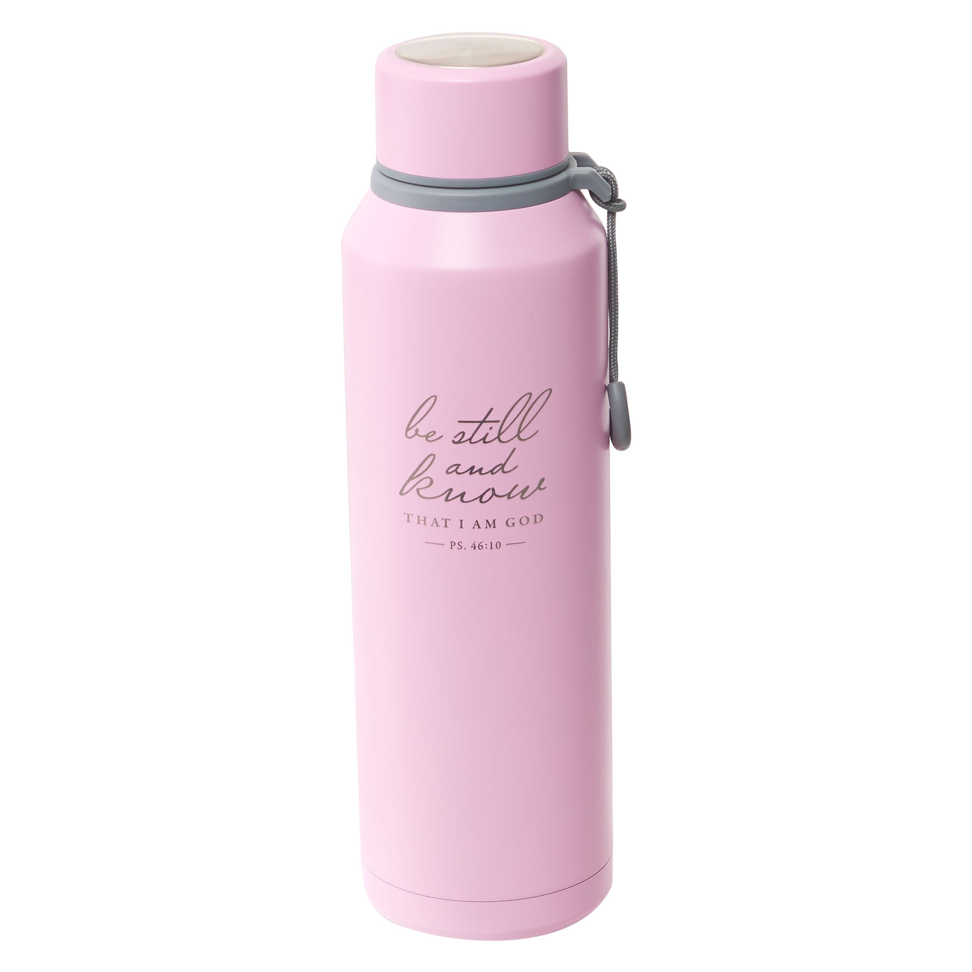 Soak in the peaceful message of the Be Still Pink Stainless Steel Water Bottle and carry it with you through the day to satisfy your physical and spiritual thirst.