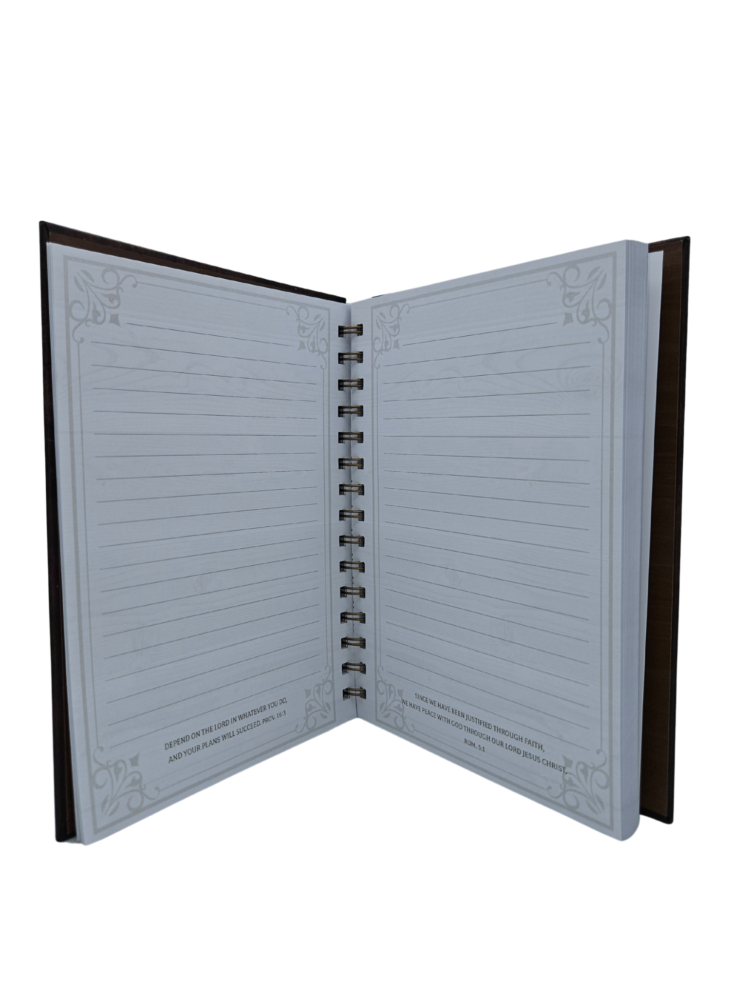 The spiral-bound journal features wire binding, a hardcover, and 192 lined pages. Each page includes Scripture for meditation or prayer.
