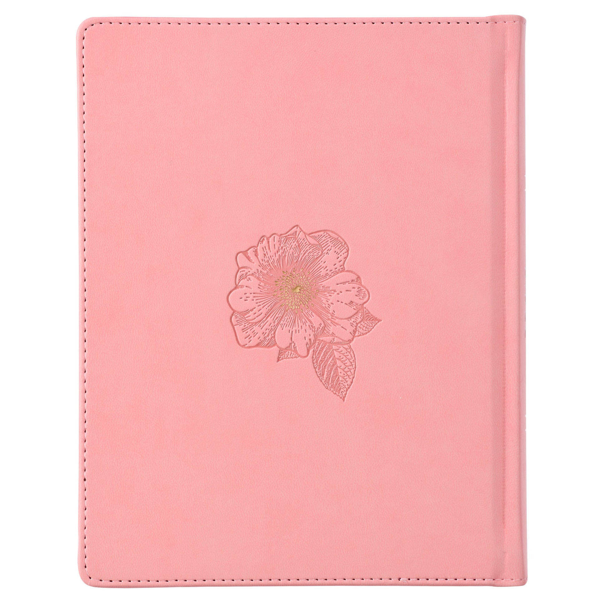 The beautifully designed KJV My Promise Bible has a pink faux leather hardcover heat-debossed with an impressive floral design that accented with gold foil. The title is heat-debossed and accented in gold foil and placed inside the design.