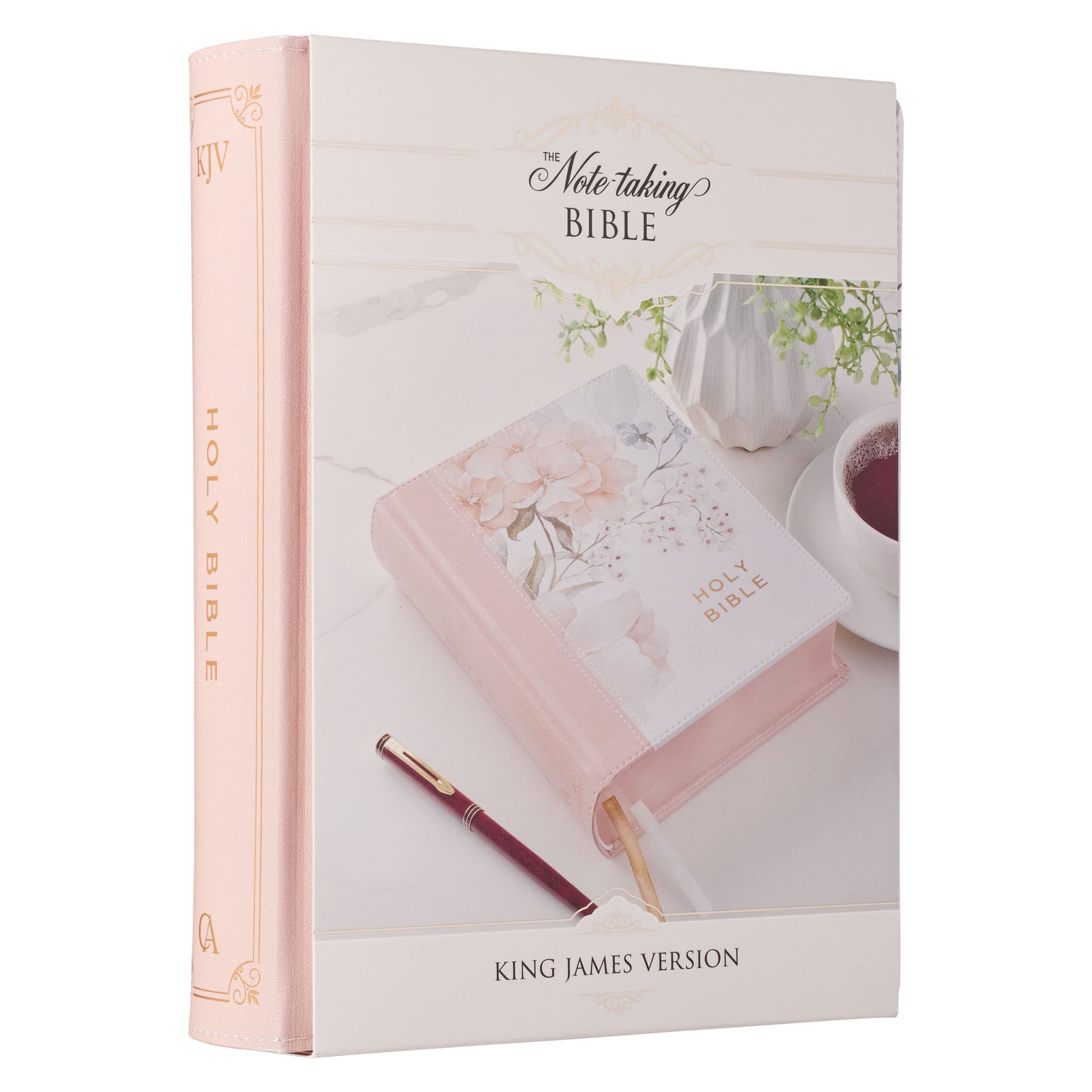 Rosy Coral Floral Faux Leather Hardcover King James Version Note-taking Bible