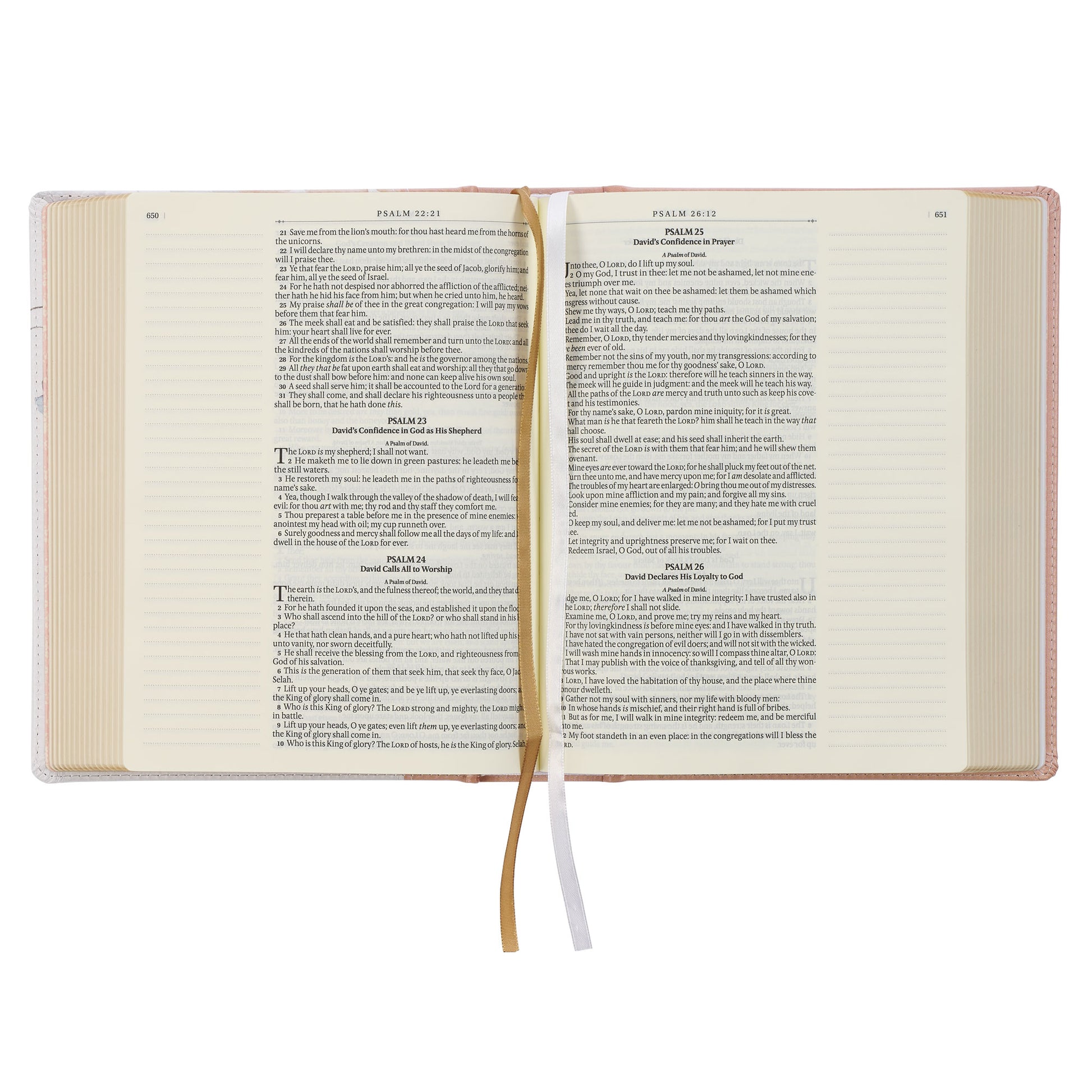 Gilt-edged pages add a subtle shimmer to the design. A unique feature is the inclusion of two satin ribbon markers, which allow for marking multiple pages.