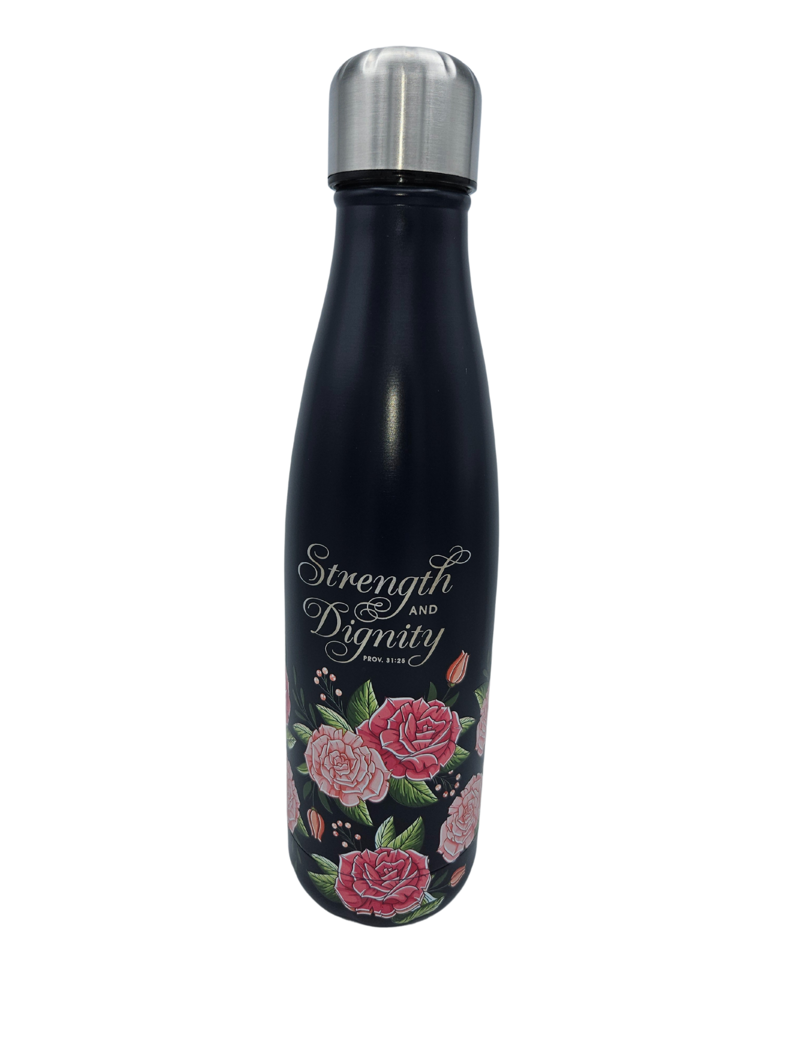 Strength and Dignity Pink Rose Stainless Steel Water Bottle - Proverbs 31:25