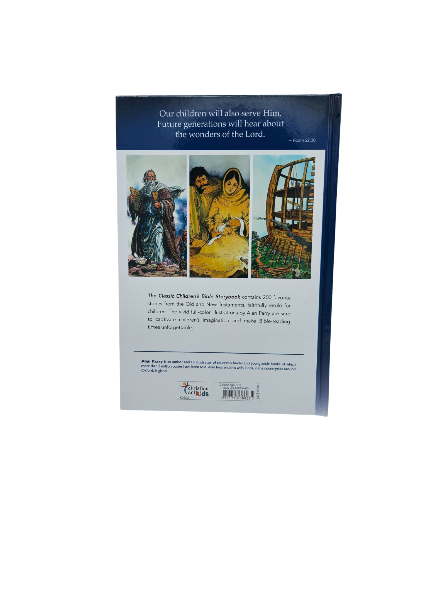 The Classic Children's Bible Storybook contains 200 favorite stories from the Old and New Testaments, faithfully retold for children. The vivid full-color illustrations by Alan Parry are sure to captivate children's imagination and make Bible-reading times unforgettable. This easy-to-read Scripture-referenced Bible storybook will certainly be cherished and passed down from generation to generation. The beautiful hardcover volume features a presentation page for gift-giving, gold foiled title and accents and an attached ribbon page marker.